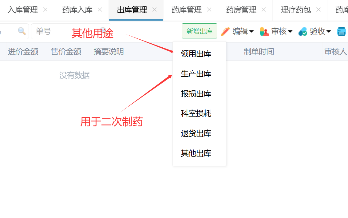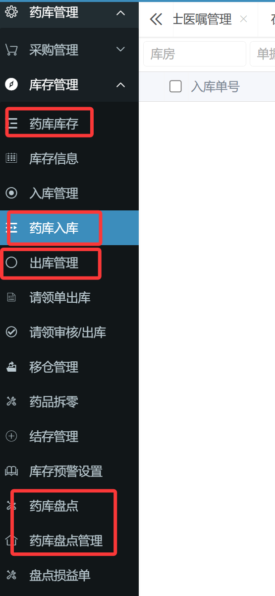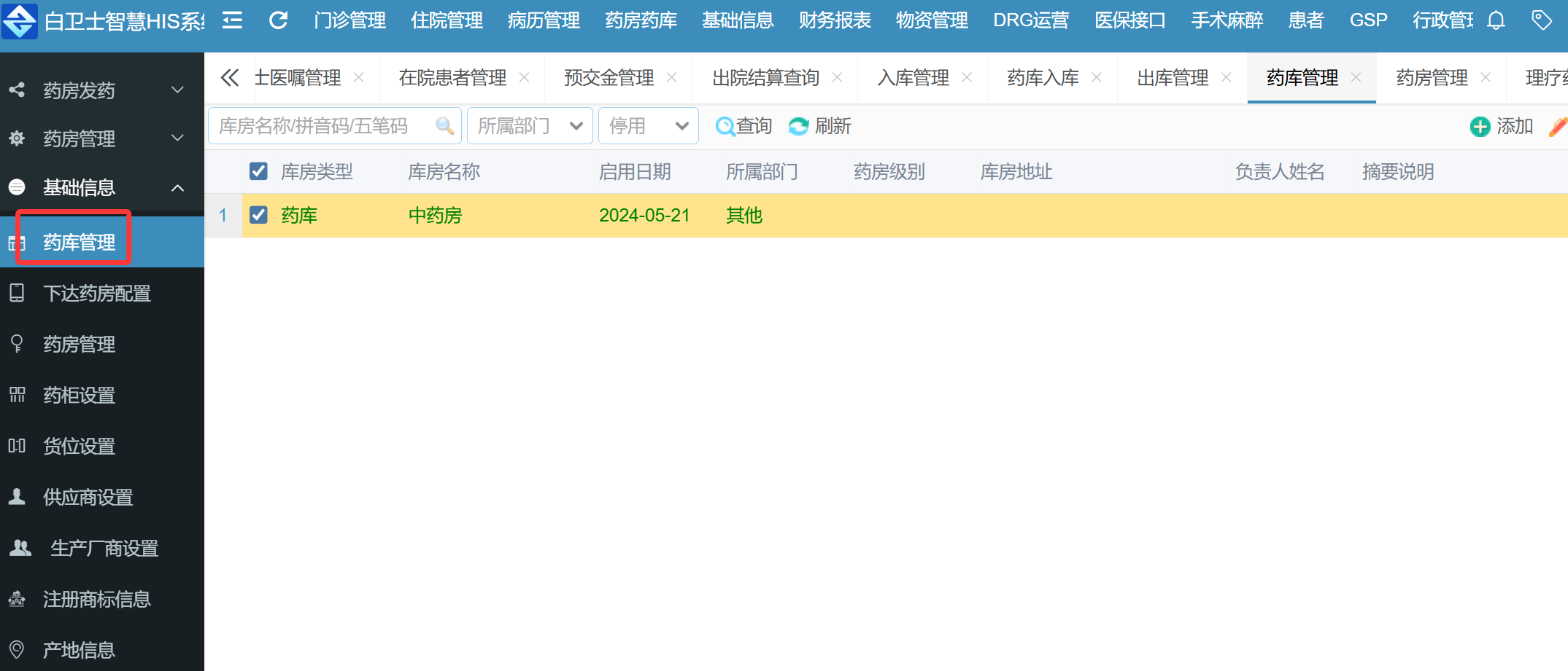 2、现在有些中药材料需要入库,就是和注射器那样入库出库到科室而已,这个入到哪里去啊?