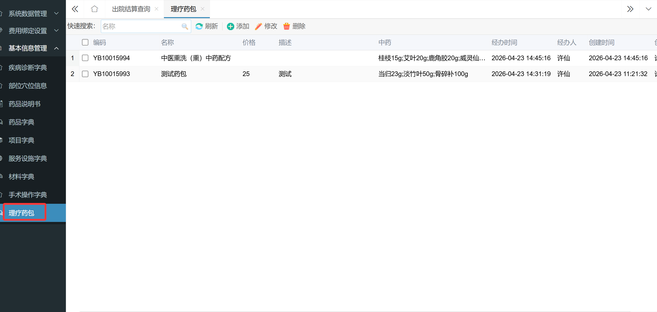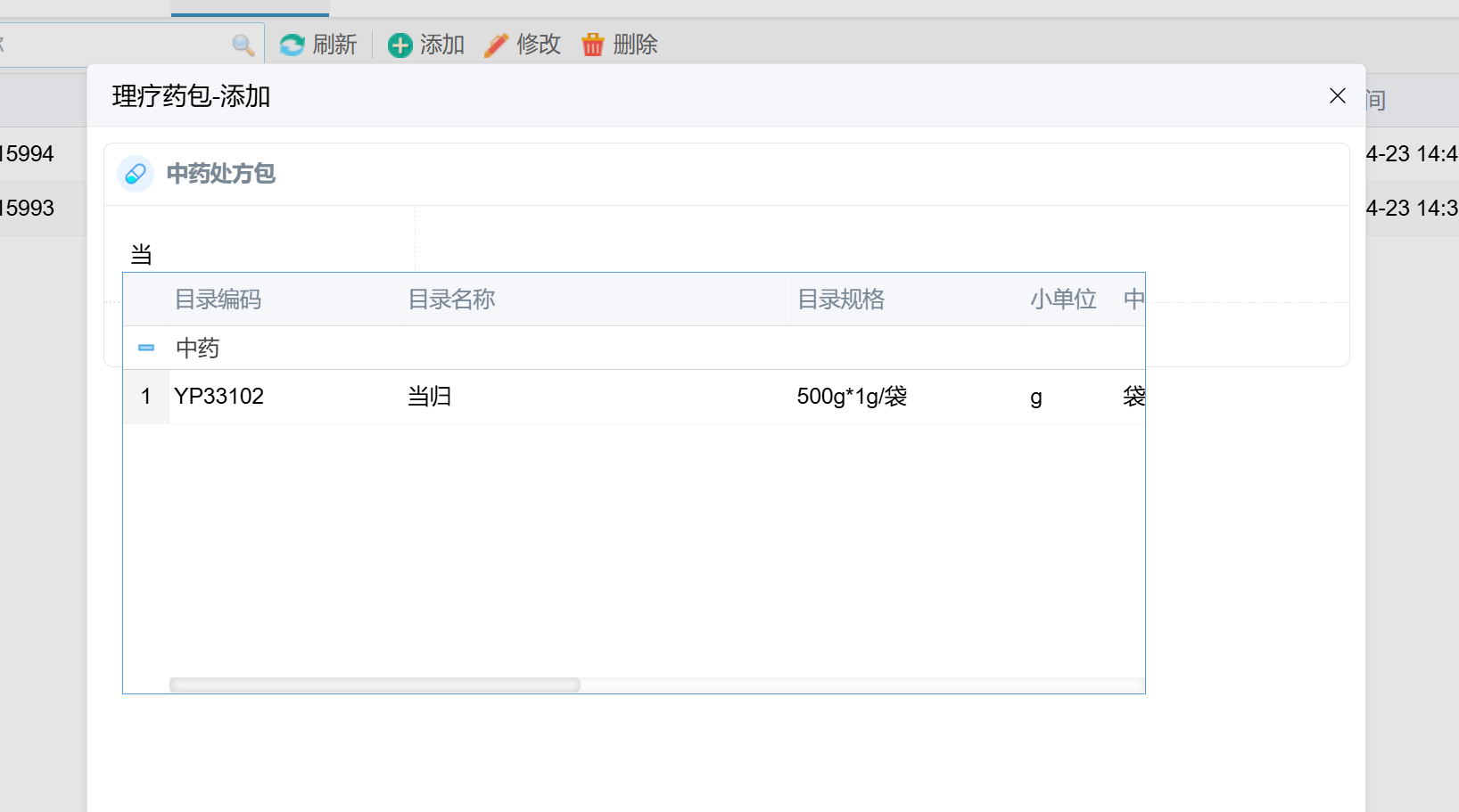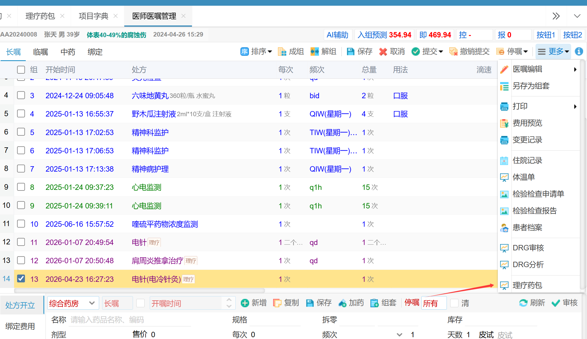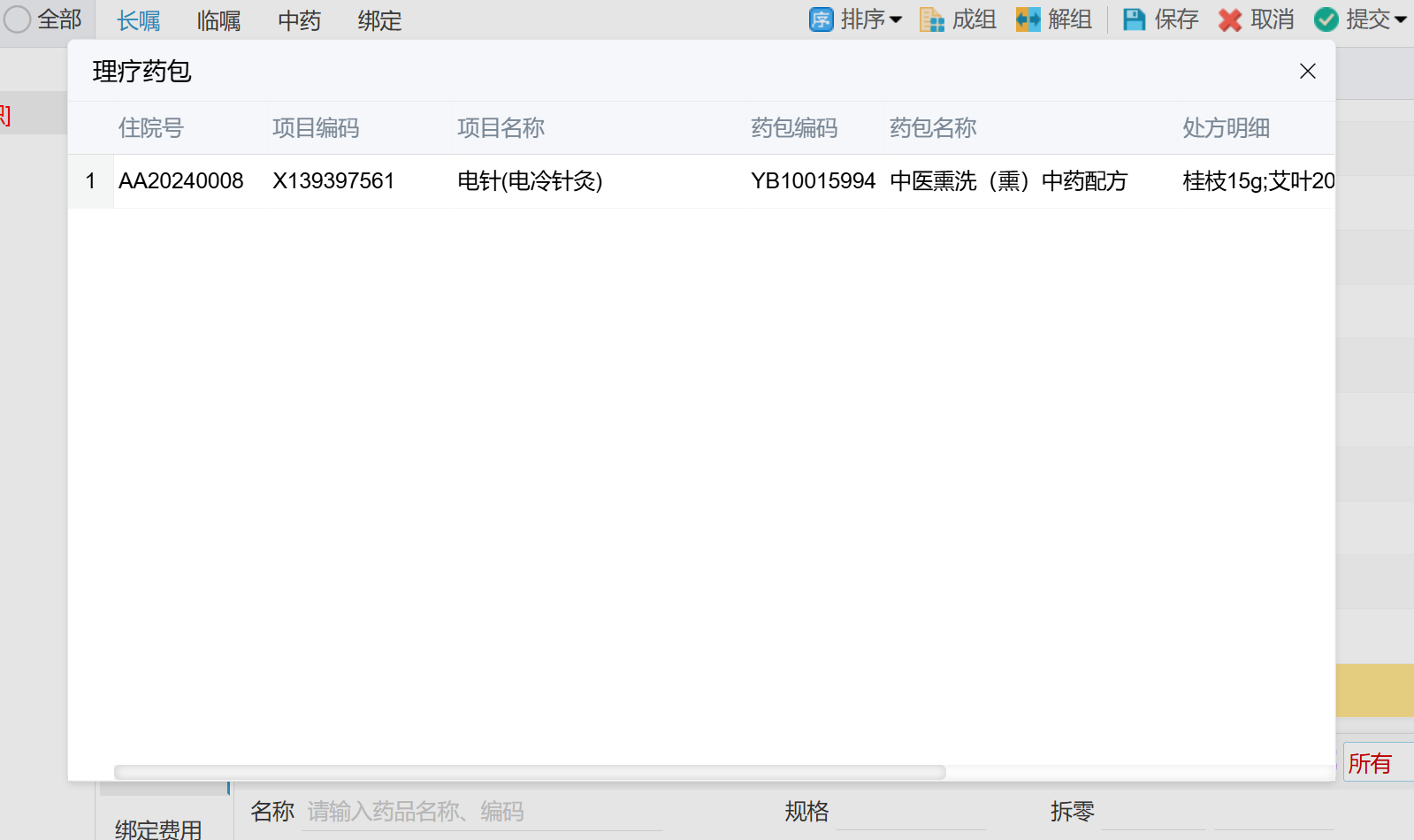 开有对应的项目后,会自动添加绑定药包,在这可以查询