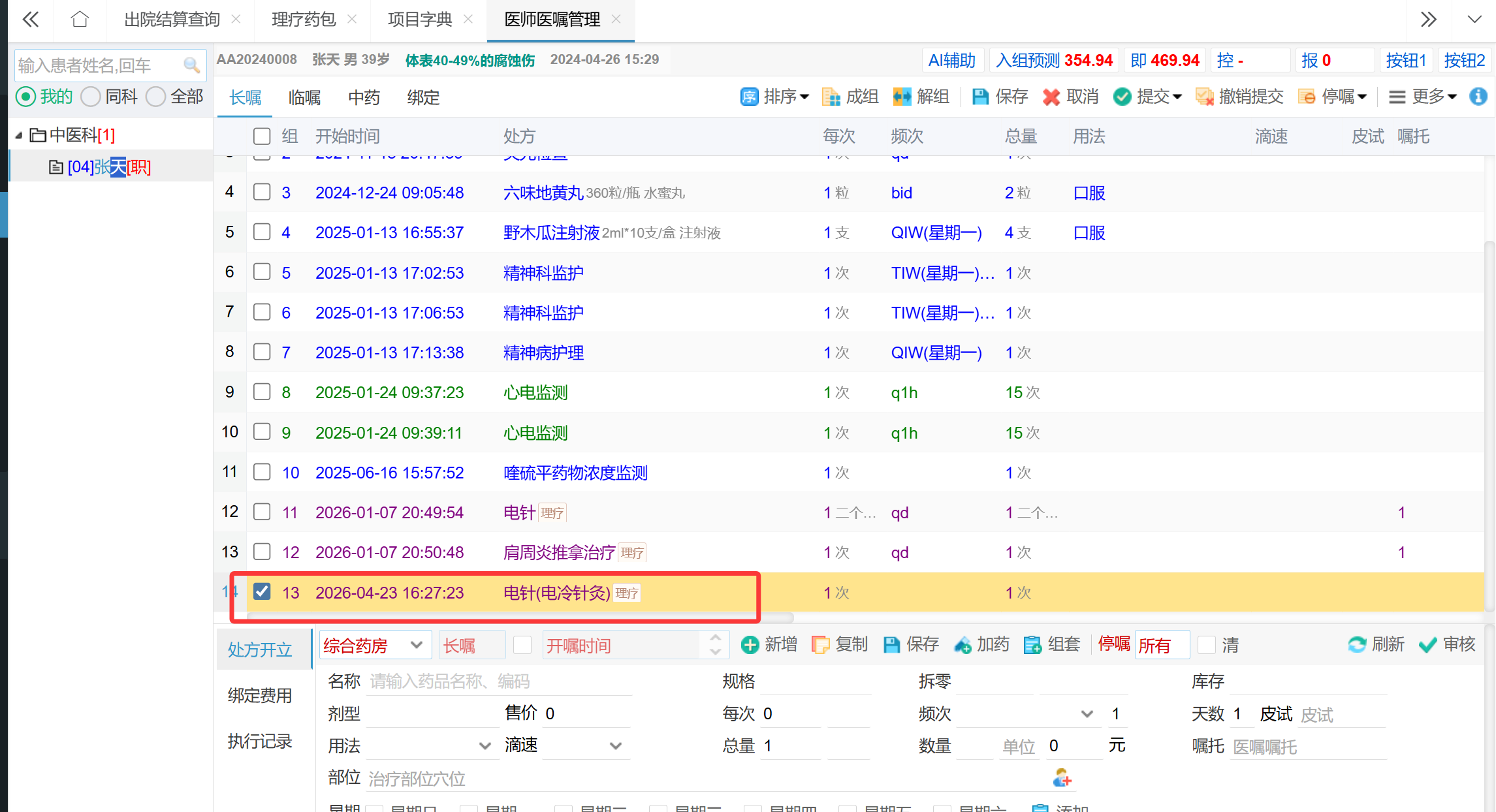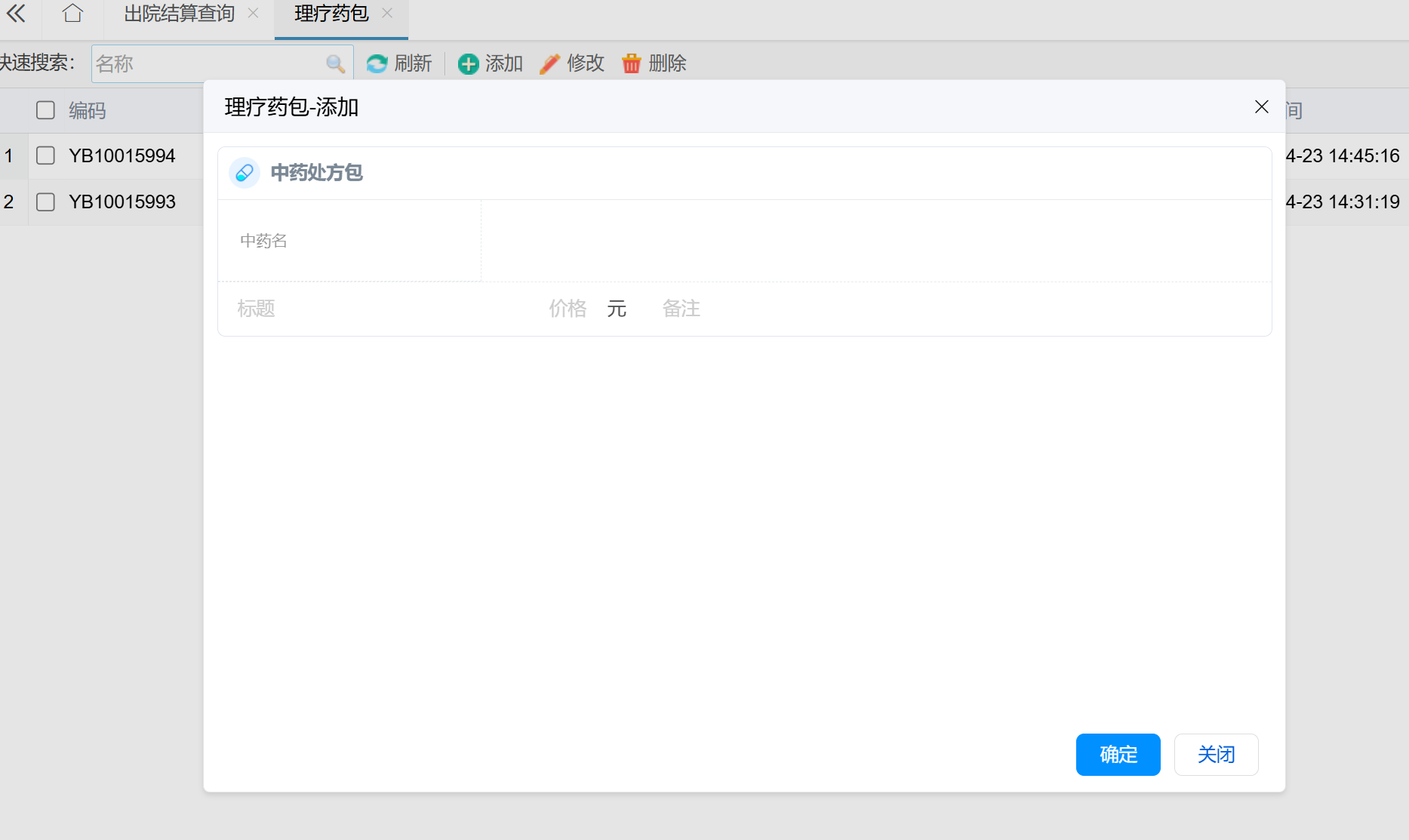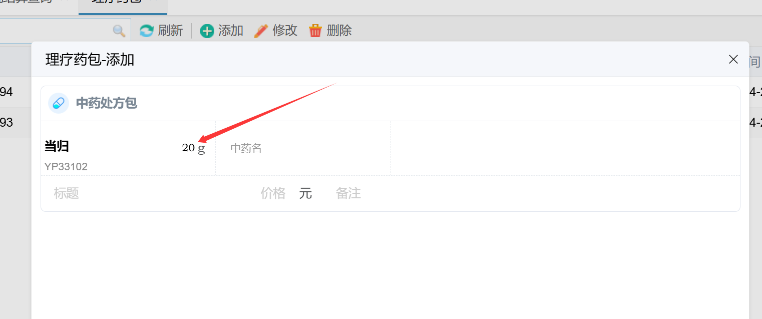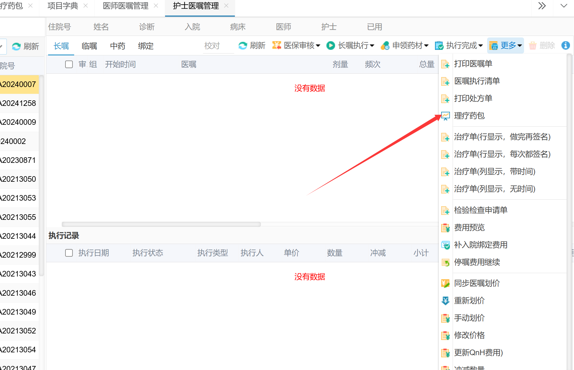 开有对应的项目后,会自动添加绑定药包,在这可以查询