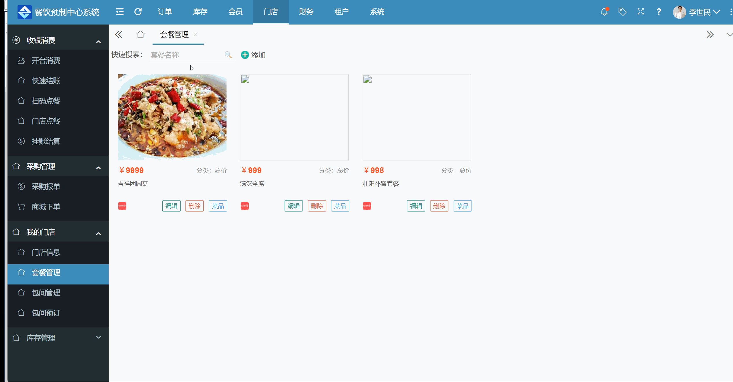 目录 搜索 引言1 系统1.1 基础信息1.1.1 企业信息1.1.2 门店管理1.1.3 员工管理1.2 权限管理1.2.1 角色管理1.2.2 登录账号1.2.3 功能菜单1.3 打印设置1.3.1 云打印平台1.3.2 打印机管理1.4 其他配置1.4.1 系统信息1.4.2 支付设置2 门店2.1 收银消费2.1.1 开台消费2.1.2 快速结账2.1.3 扫码点餐2.1.4 报单点餐2.1.5 挂账结算2.2 采购管理2.2.1 采购报单2.2.2 商城下单2.3 我的门店2.3.1 门店信息2.3.2 套餐管理2.3.3 包间管理2.3.4 包间预订2.4 库存管理2.4.1 菜品管理2.4.2 订单收货2.4.3 入库管理2.4.4 出库管理2.4.5 总部送货确认3 订单3.1 门店订单3.1.1 采购订单3.1.2 点餐订单3.2 配送管理3.2.1 车辆管理3.2.2 线路管理3.2.3 配送任务3.2.4 异常配送3.2.5 司机轨迹4 库存4.1 商品管理4.1.1 商品字典4.1.2 商品库存4.2 采购管理4.2.1 采购汇总4.2.2 采购计划4.3 入库管理4.3.1 采购入库4.3.2 商品入库4.4 出库管理4.4.1 分拣出库4.4.2 分拣包装4.4.3 加工出库4.4.4 商品出库4.5 供应商管理4.5.1 供应商信息4.5.2 供应商结算5 会员5.1 会员管理5.1.1 企业会员5.1.2 个人会员5.2 预订管理5.2.1 包间预订6 财务6.1 门店对账6.2 账期欠款6.3 供应商结算查询7 租户7.1 租户信息7.2 租户角色* 常用问题1 流程是怎样的?2 分拣完成后,下一步要做什么了? 暂无相关搜索结果! 本文档使用 MinDoc 发布 2.3.2 套餐管理 概述菜品打包出售优惠客户。 操作步骤文档更新时间: 2022-11-29 15:52 作者:zhoug