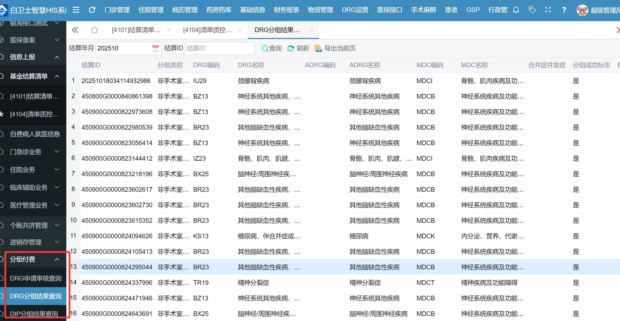 功能菜单:医保接口-信息上报-[4101]结算清单上传,如果没有找到此菜单,有可能是菜单未分配,请找管理员分配。
